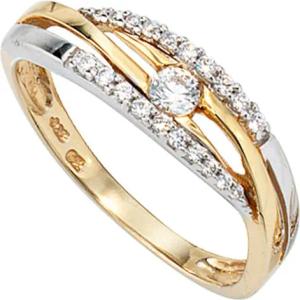 Ring Flügel aus 333 Gold Gelbgold bicolor mit 9 Zirkonia Fingerring Damen, Ringgröße:Innenumfang 50mm ~ Ø15.9mm
