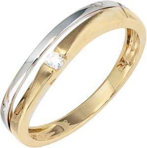 Schmaler Ring aus 333 Gold Gelbgold bicolor mit 11 Zirkonia B: 3mm Damen, Ringgröße:Innenumfang 58mm ~ Ø18.5mm