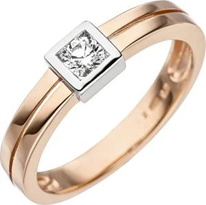 Ring mit weißem Zirkonia Solitär Quadrat 375 Gold Rotgold bicolor Rotgoldring, Ringgröße:Innenumfang 60mm ~ Ø19.1mm
