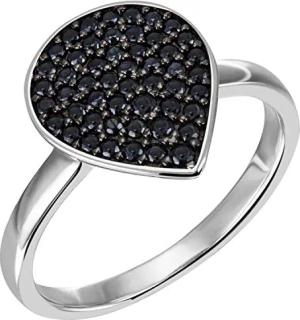 Ring Tropfen aus 925 Silber mit 51 Zirkonia schwarz Fingerring Damenring, Ringgröße:Innenumfang 54mm ~ Ø17.2mm