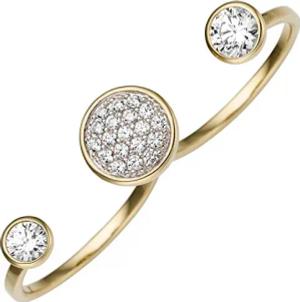 Offener Ring Damenring mit 40 Zirkonia weiß 333 Gold Gelbgold glänzend B: 21,7mm, Ringgröße:Innenumfang 60mm ~ Ø19.1mm