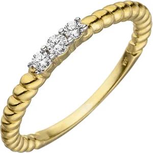 Solitär Ring Diamant Brillant 585 Gold Gelbgold gedreht Fingerring, Ringgröße:Innenumfang 60mm ~ Ø19.1mm