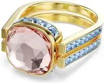 Chroma Ring, Vergoldeter und Mehrfarbiger Twist-Damenring mit einem Wendbaren ReCreated Crystal in Grün und Pink im Kissenschliff und Kleineren Blauen Kristallen, Größe: 55