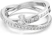 Matrix Vittore Ring, Weißer Damenring mit Silberfarbenem Finish und Weißen Kristallen im Tropfenschliff in Durchgehender Reihe, Größe: 52