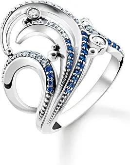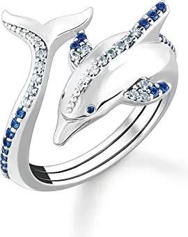 Silberring Delfin mit Blauen Steinen TR2384-644-1-50 Ringgröße 50/15,9