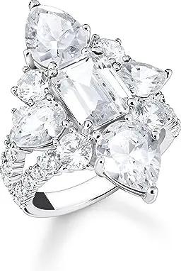 Cocktailring mit weißen Steinen in drei Schliffarten Silber 925 Sterlingsilber