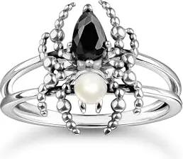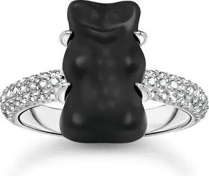 TR2478-052-11-56 Silberner Ring mit schwarzem Goldbären und Zirkonia Damen