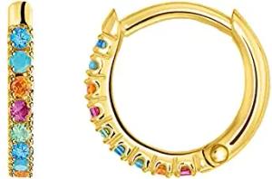 Einzel Creole weiße Steine gold 925 Sterlingsilber, 750 Gelbgold Vergoldung