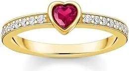 Solitärring mit rotem Stein in Herzschliff Silber 925 Sterlingsilber, 750 Gelbgold Vergoldung