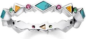 Damen-Damenring 925er Silber Glasstein 54, Mehrfarbig 32025649
