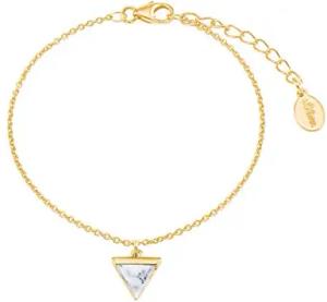 Damen-Armkette aus 925er Sterling Silber gelbvergoldet, dreieckiger Marmor-Anhänger, längenverstellbar (16+3 cm)