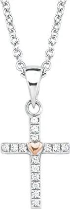 Kette mit Kreuz Anhänger mit Herz für Mädchen, Zirkonia und 925 Sterling Silber, Teil-rhodiniert