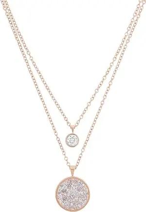 Kette mit rundem Anhänger für Damen, Kristalle von Swarovski und Edelstahl, IP Rose