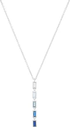 Y-Collier 925 Sterling Silber Damen Halsschmuck, mit Zirkonia synth., 42+3 cm, Blau, Kommt in Schmuck Geschenk Box, 2031402