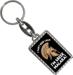 Griechischer Helm Schlüsselanhänger mit Bordüre - I can't keep calm Malaka Anhängergeschenk mit lustigem Spruch für Griechenland-Fans