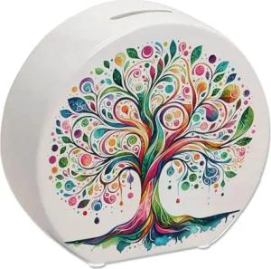 Lebensbaum Spardose Aquarell-Stil Kunstwerk Bunter Energie-Spender für Ihre Familie Farbenfroher Baum der Stärke