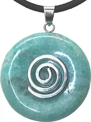 - Amazonit Edelstein Donut optional als Kette mit versilberter oder vergoldeter Spirale und Wildlederband | Heilstein | Edelstein | Chakra-Stein (Mit Silberspirale)
