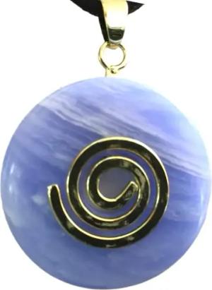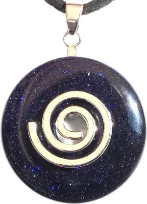 - Premium Blaufluss Donut optional als Kette mit Silber- oder Goldanhänger und 80cm Lederband | Heilstein | Edelstein | Chakra-Stein (Mit Goldspirale)