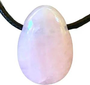 - Edelstein Anhänger aus echtem Rosenquarz | Tropfenanhänger | farbintensiv | mit 80 cm Wildlederband