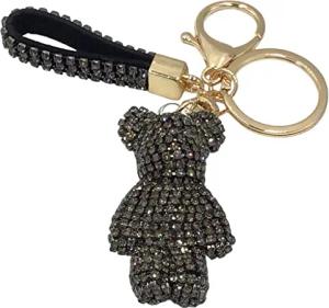 Edler Glitzerbär Schlüsselanhänger mit Ring und Lederschlaufe | luxuriöses Geschenk | Cartoon | Strass (Anthrazit)