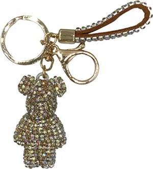 Edler Glitzerbär Schlüsselanhänger mit Ring und Lederschlaufe | luxuriöses Geschenk | Cartoon | Strass (Gold)