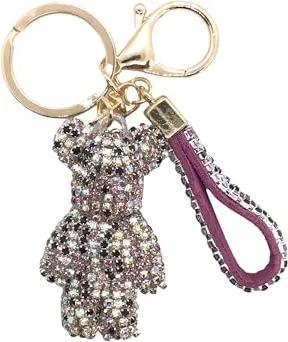 Edler Glitzerbär Schlüsselanhänger mit Ring und Lederschlaufe | luxuriöses Geschenk | Cartoon | Strass (lila)