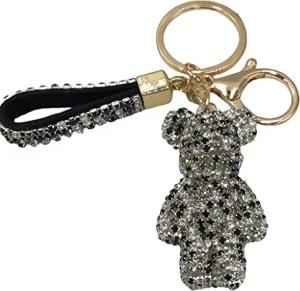 Edler Glitzerbär Schlüsselanhänger mit Ring und Lederschlaufe | luxuriöses Geschenk | Cartoon | Strass (Schwarz-weiß)