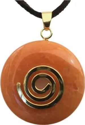 - Premium Orangencalcit Donut optional als Kette mit Silber- oder Goldanhänger und 80cm Lederband | Heilstein | Edelstein | Chakra-Stein (Donut mit Goldspirale)