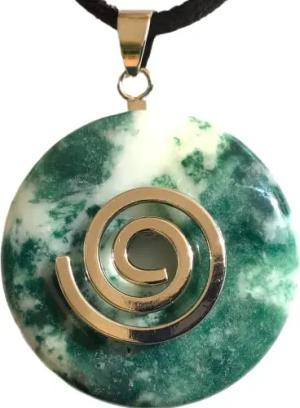 - Premium Baumachat Donut optional als Kette mit Silber- oder Goldanhänger und 80cm Lederband | Heilstein | Edelstein | Chakra-Stein (Donut mit Silberspirale)