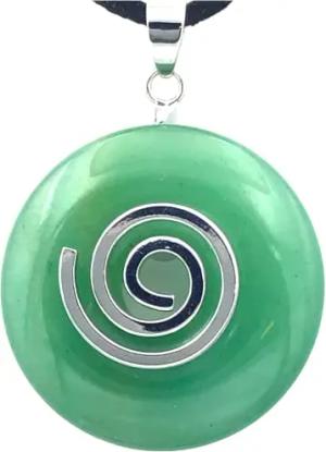 - Premium grüner Aventurin Donut optional als Kette mit Silber- oder Goldanhänger und 80cm Lederband | Heilstein | Edelstein | Chakra-Stein (Mit Goldspirale)