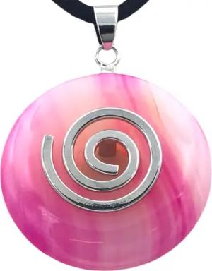 - Premium Kette mit pinkem Achat Edelstein Donut Ø 30mm | Heilstein | Edelstein | Chakra-Stein (Mit Silberspirale und Wildlederband)