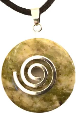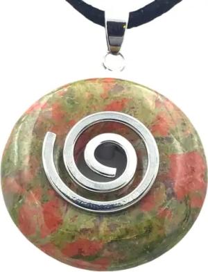- Premium Kette mit Unakit Edelstein Donut | Heilstein | Edelstein | Chakra-Stein (mit Silberspirale)