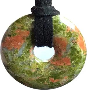 - Premium Kette mit Unakit Edelstein Donut | Heilstein | Edelstein | Chakra-Stein (mit Wildlederband)