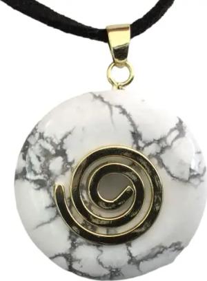 - Premium Magnesit Donut optional als Kette mit Silber- oder Goldanhänger und 80cm Lederband | Heilstein | Edelstein | Chakra-Stein (donut mit Wildlederband)
