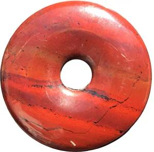 - Premium Jaspis rot Donut optional als Kette mit Silber- oder Goldanhänger und 80cm Lederband | Heilstein | Edelstein | Chakra-Stein (Donut mit Wildlederband)