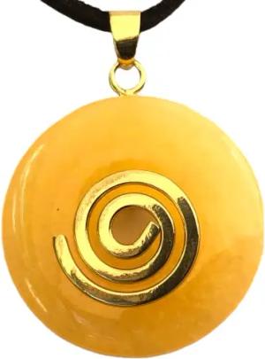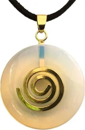 - Premium Opalglas Donut optional als Kette mit Silber- oder Goldanhänger und 80cm Lederband | Heilstein | Edelstein | Chakra-Stein (Donut mit Goldspirale)