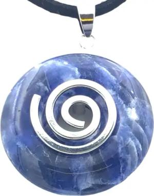 - Premium Sodalith Donut optional als Kette mit Silber- oder Goldanhänger und 80cm Lederband | Heilstein | Edelstein | Chakra-Stein (Donut mit Goldspirale)
