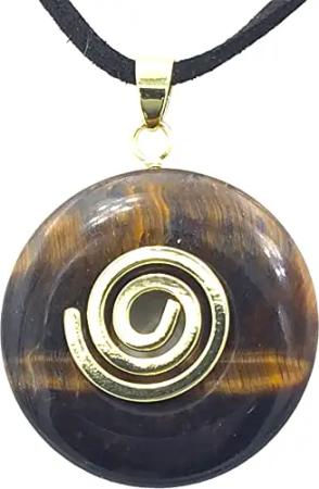 - Premium Tigerauge Donut A+ Qualität optional als Kette mit Silber- oder Goldanhänger und 80cm Lederband | Heilstein | Edelstein | Chakra-Stein (Donut mit Silberspirale)