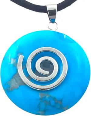 - Premium Türkenit Donut optional als Kette mit Silber- oder Goldanhänger und 80cm Lederband | Heilstein | Edelstein | Chakra-Stein (Mit Silberspirale)