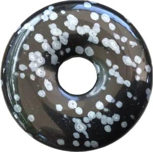 - Schneeflockenobsidian Edelstein Donut optional als Kette mit versilberter oder vergoldeter Spirale und Wildlederband | Heilstein | Edelstein | Chakra-Stein (Mit Wildlederband)