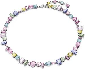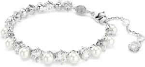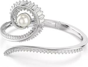 Hyperbola Armreif, Weißes, Rhodiniertes Armband mit Strahlenden Kristallen in Verschiedenen Schliffen