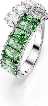 Hyperbola Ring, Weißer, Rhodinierter Damenring mit Strahlenden Kristallen in Verschiedenen Schliffen