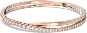 Hyperbola Armband, Weißer und Rosé Vergoldeter Damenarmreif mit Strahlenden Swarovski Kristallen