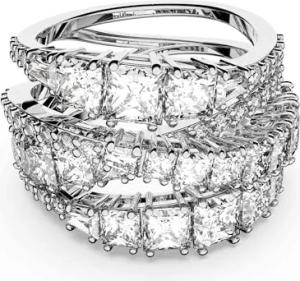 Matrix Ring, Rhodinierter Damenschmuck mit Rosa-violetten, Strahlenden Swarovski Kristallen