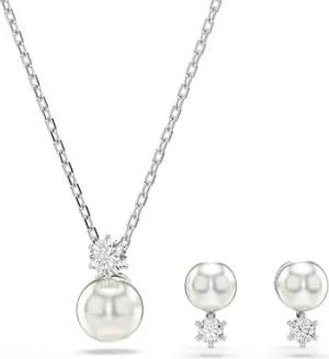 Matrix Set, Weiße, Rhodinierte Halskette und Ohrringe mit Kristallperle und Strahlenden Kristallen im Rundschliff