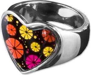 Edelstahl Damen Ring Herz Buntes Motiv Animal Print Muster Fingerring Rockabilly RS45, Blumen Gr. 56
