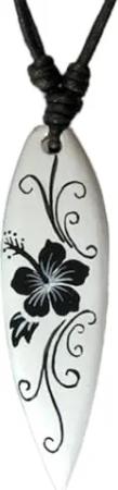 Halskette Surfbrett Holzanhänger Baumwollband Surfer Kette Länge verstellbar HK30, D7 Hibiskus Schwarz