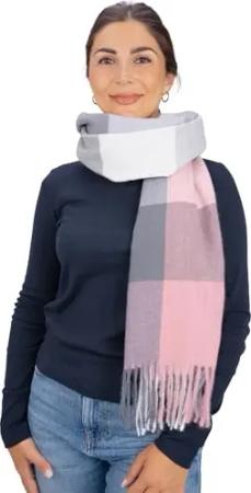 Weicher, leichter & kuscheliger Schal mit Fransen aus Kaschmir Mix - Milly (A4 Rosa Weiß)