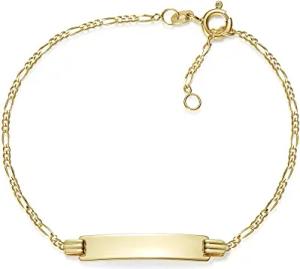Kinder/Baby Gravur-Armband Figaro 1,5mm | aus echt 585 Gold | hochglanzpoliertes Armband | Echtgold mit Federringverschluß