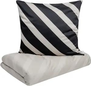 Bettwäsche 140 x 200 cm - 100% Baumwolle, Reißverschluss, anschmiegsam, weich & waschbar, Mako Satinbettwäsche gestreift beige dunkelgrau Österreich Größe